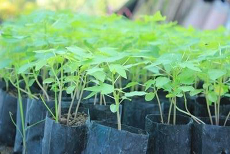 ซึ่งจะสามารถย้ายกล้าปลูกเมื่อเพาะเมล็ดได้ 45-60 วันถอนแยกต้นกล้าในถุงให้เหลือต้นที่แข็งแรงเพียงต้นเดียวหลังจากถอนแยกต้นกล้าเหลือต้นเดียวแล้ว อาจสามารถเร่งให้ต้นกล้าเจริญเติบโตได้เร็วขึ้นโดยให้ปุ๋ยสูตร 21-21-21 ที่มีธาตุอาหารรองผสมอยู่ด้วย โดยใช้ปุ๋ยอัตรา 2 ช้อนแกงต่อนํ้า 20 ลิตร และผสมยาจับใบฉีดพ่นทุกๆ 7 วัน