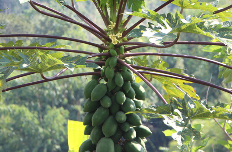 - ปลูกผลไม้ที่ให้ผลเร็ว เช่น กล้วยน้ำว้า มะละกอ ฝรั่ง มะม่วงพันธุ์เตี้ย ใช้พื้นที่รอบขอบสวนหรือริมรั้วได้ บางชนิดให้ผลผลิตใน 6 เดือน–1 ปี ช่วยให้มีผลไม้กินเองและจำหน่ายเป็นรายได้เสริม
