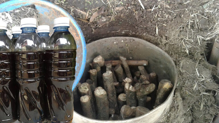น้ำหมักชีวภาพ 4 ช้อนโต๊ะ ต่อน้ำ 4 ปิ๊บต่อไร่ ฉีดพ่นหรือรดลงดินทุก 7-10 วัน